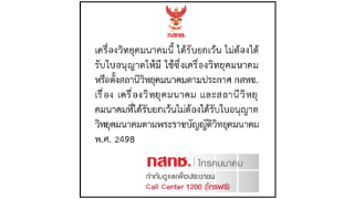 | Thailand | 1) เครื่องโทรคมนาคมและอุปกรณ์นี้ มีความสอดคล้องตามมาตรฐานหรือข้อกำหนดของ กสทช. 2) เครื่องวิทยุคมนาคมนี้มีระดับการแผ่คลื่นแม่เหล็กไฟฟ้าสอดคล้องตามมาตรฐานความปลอดภัยต่อสุขภาพของมนุษย์จากการใช้เครื่องวิทยุคมนาคมที่คณะกรรมการกิจการโทรคมนาคมแห่งชาติประกาศกําหนด | |