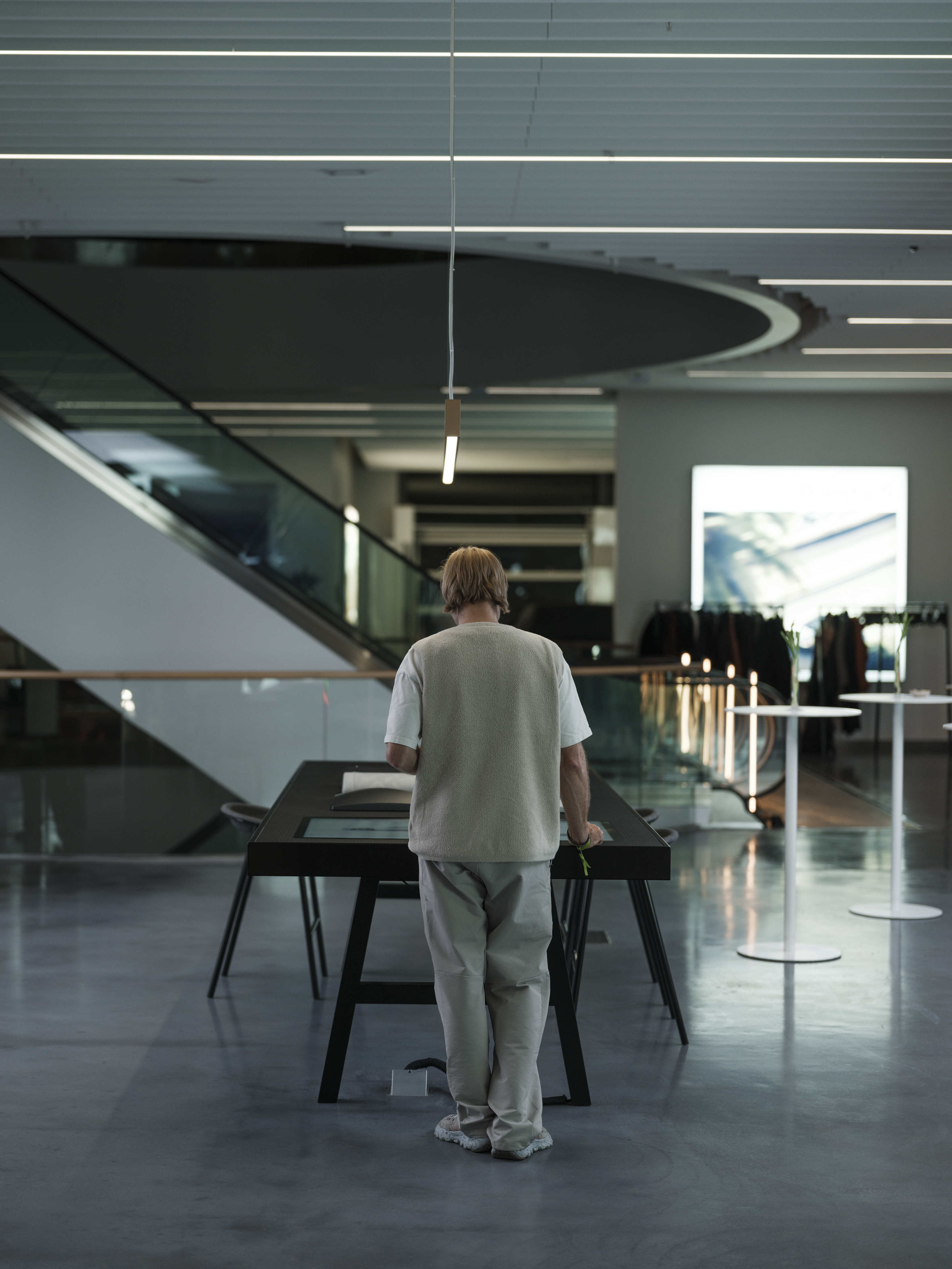 It’s a sentiment echoed by Rong, whose role is to ensure Kista retains the familiar atmosphere that defines Polestar Spaces around the world. “Whether you’re in Sydney, Seoul or Stockholm, the feeling should be the same,” she says. “It’s calm and minimalistic. You immediately become focused. It’s a bit like entering a gallery, where your attention shifts straight to what you’re there to explore.”